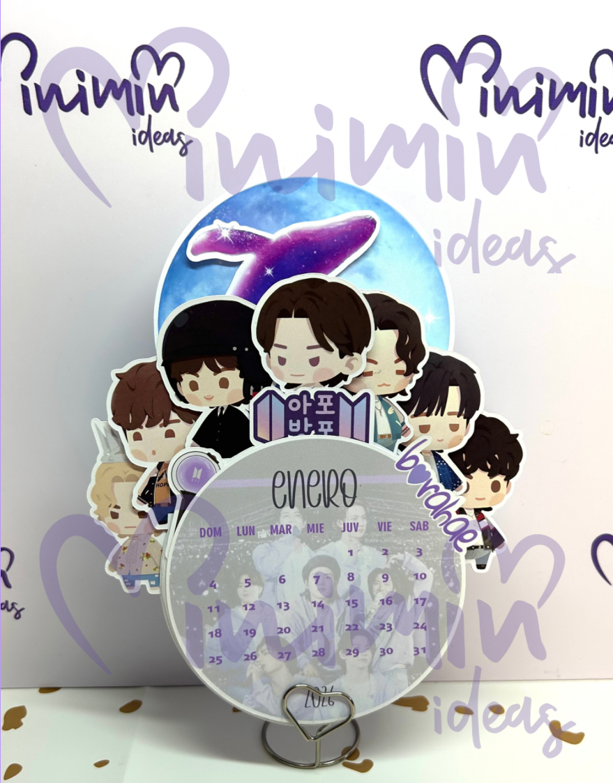 Calendario 2026 armable perfecto para escritorio con diseño de los Bitis panzones en su era solista